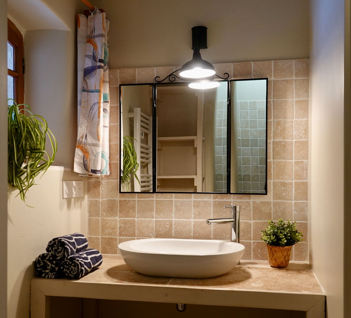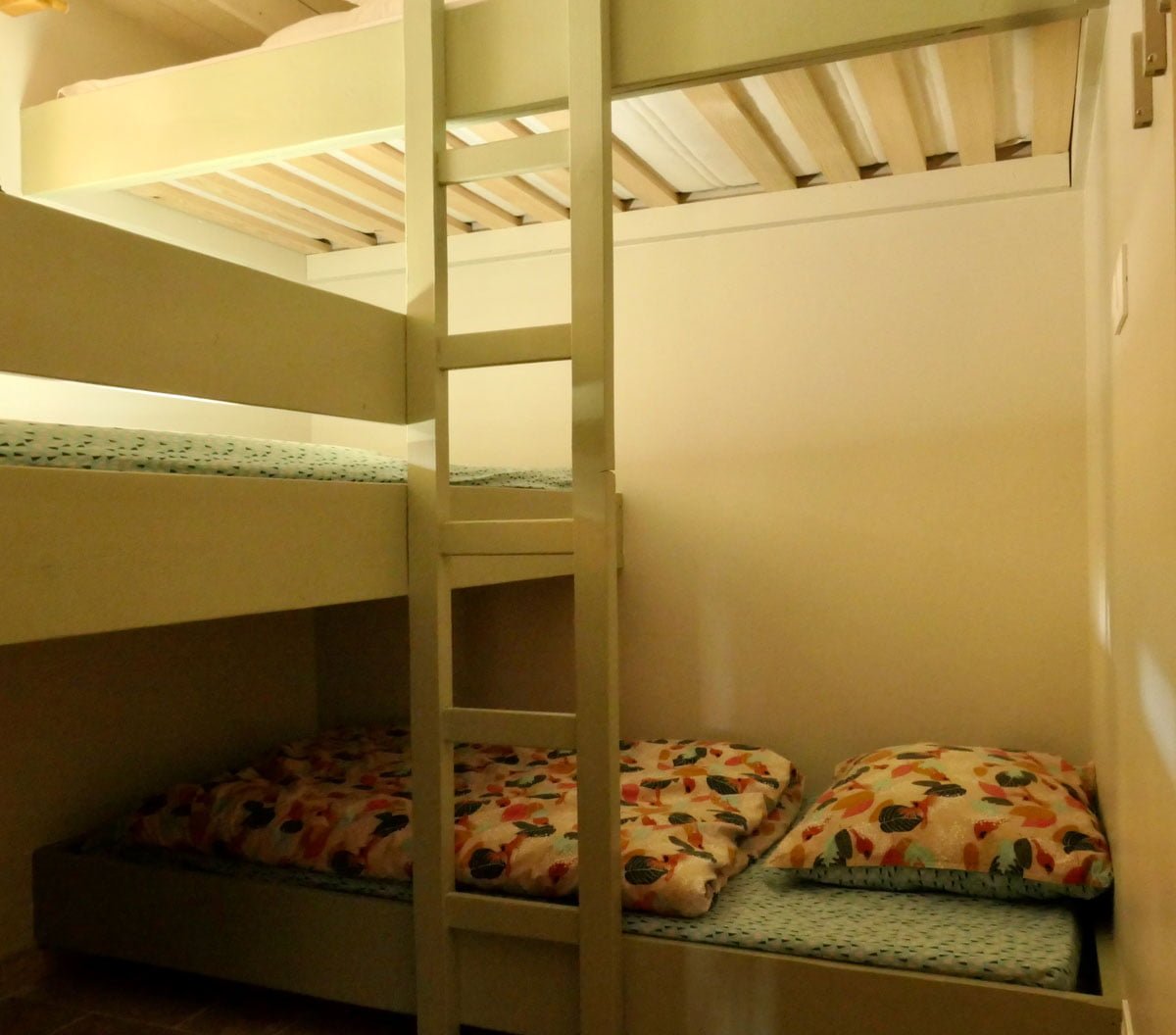 - cuisine équipée, coin repas & salon, 1 lit double & 1 lit superposé, salle de bains avec douche et lavabo, toilette